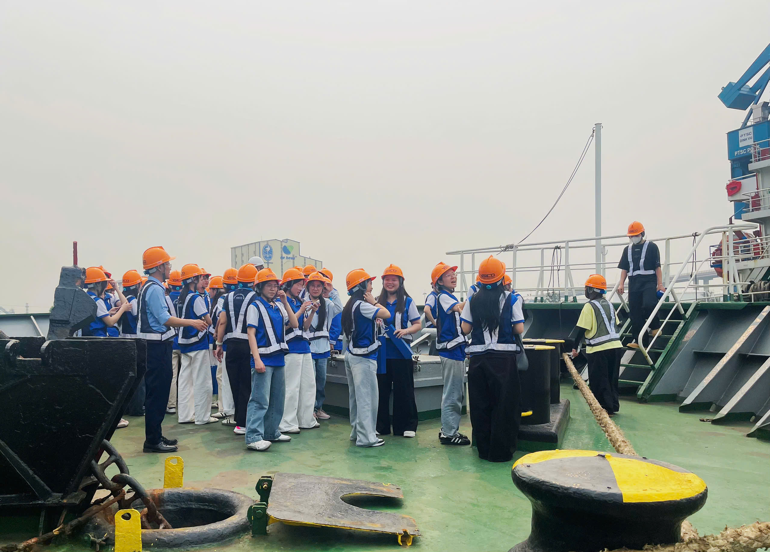 Buổi chiều cùng ngày, Đoàn di chuyển đi Cảng PTSC Đình Vũ ở Hải Phòng. Tại đây, sinh viên được tham quan tàu container tải trọng 900 TEU của VSICO. Sinh viên được cán bộ, nhân viên của Công ty giới thiệu về hoạt động vận hành dịch vụ vận tải biển; được tham quan và nghe giới thiệu các hoạt động của tàu biển; được trực tiếp quan sát hoạt động bốc xếp container lên tàu; được giải đáp các thắc mắc về hoạt động vận tải đường biển.