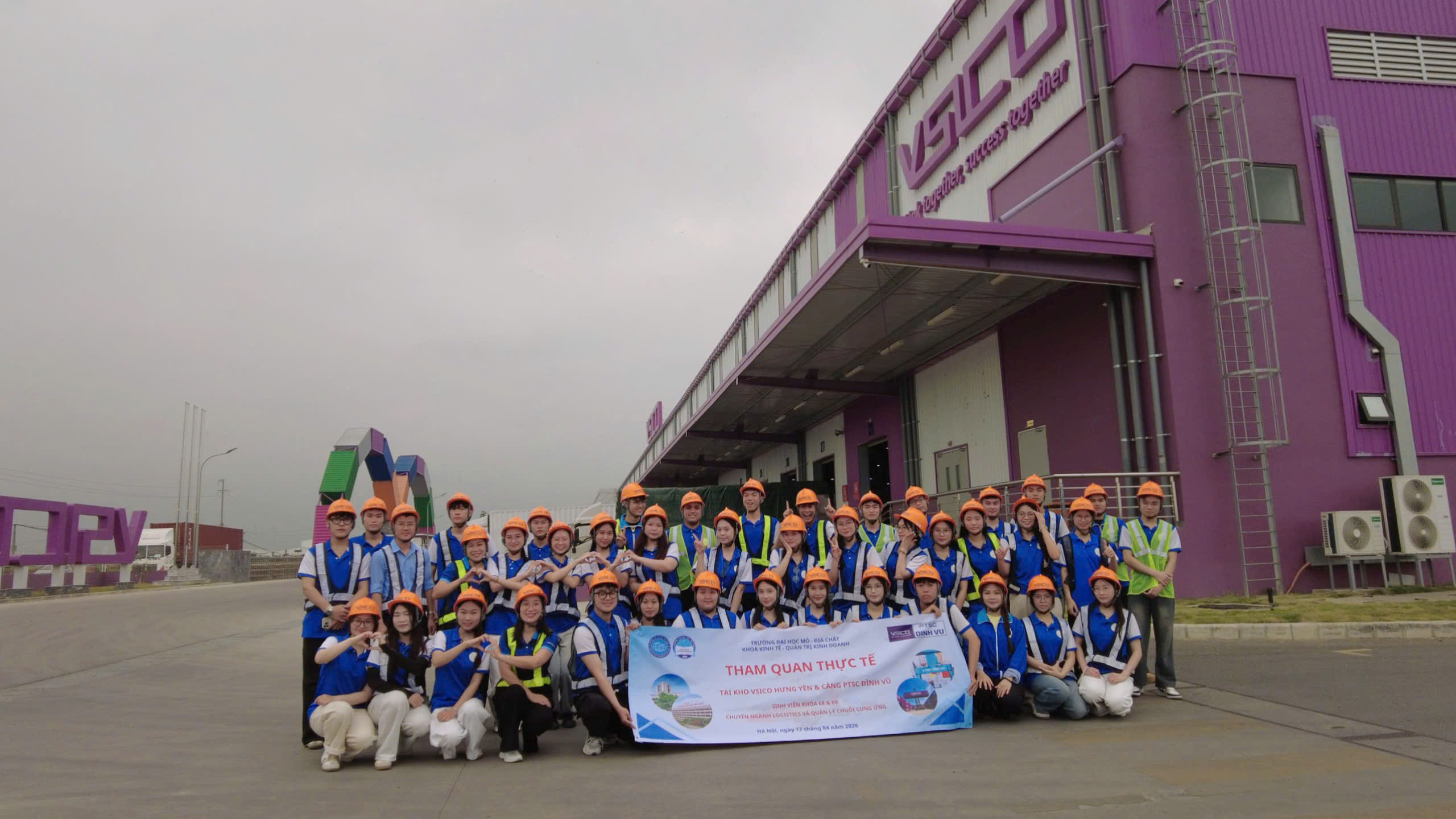 Theo kế hoạch đào tại của Trường Đại học Mỏ - Địa chất; được sự hỗ trợ của Công ty CP Hàng hải VSICO, Sinh viên chuyên ngành Logistics và quản lý chuỗi cung ứng đã có kỳ tham quan, học tập thực tế về vận hành kho trung chuyển tại Kho VSICO Hưng Yên; vận hành dịch vụ vận tải đường biển tại Cảng PTSC Đình Vũ, Hải Phòng.