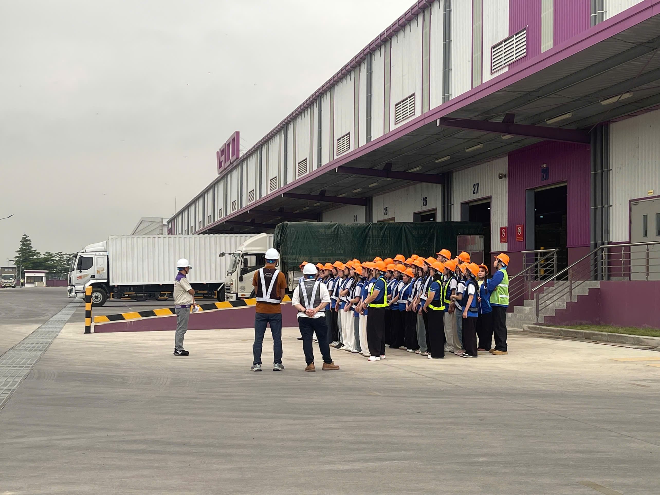 Tại Kho VSICO Hưng Yên, sinh viên đã được các Anh/Chị quản lý kho giới thiệu về kho, về các quy trình nhập, xuất kho, kiểm kê kho; giới thiếu về cách thức sắp xếp hàng hóa và đảm bảo an toàn trong kho; ứng dụng công nghệ trong quản lý kho; và giới thiệu về hoạt động kinh doanh kho trung chuyển trong logistcs. Tại đây, sinh viên cũng được thảo luận sôi nổi và đặt ra các câu hỏi, thắc mắc, nhờ các Anh/Chị quản lý kho giải đáp.
